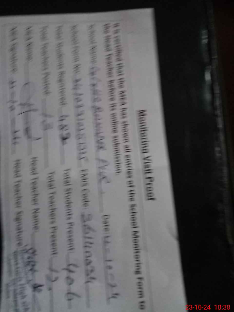 | Certified that this School was Inspected by the Undersigned MEA/DMO Today and the Information Stated Above is as Per Record. | |||||