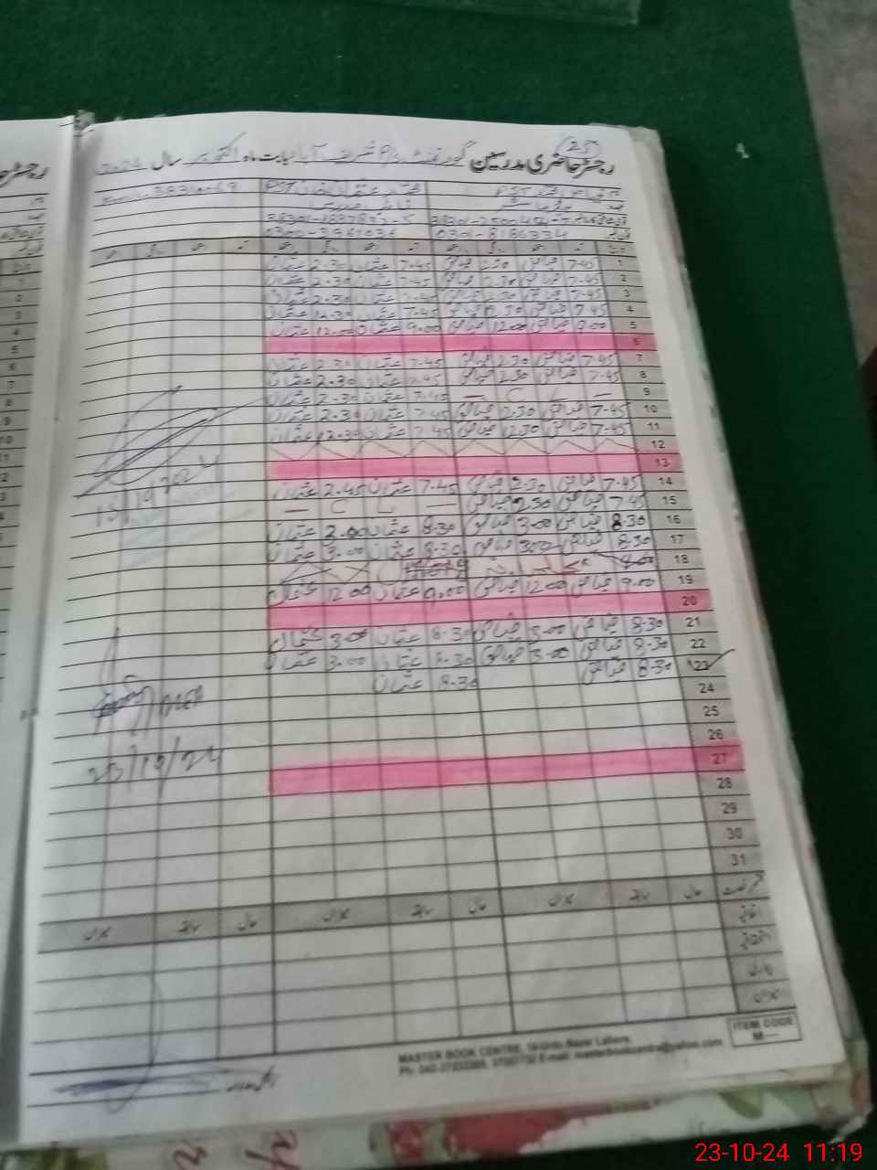 | CNIC | Full Name | Designation | R/C | Absence During Last Calender Month |