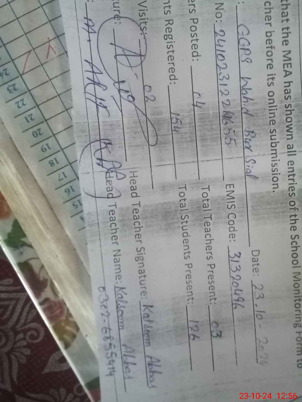 | Attendance Register | Head Teacher | MEA with School | Visit Proof |