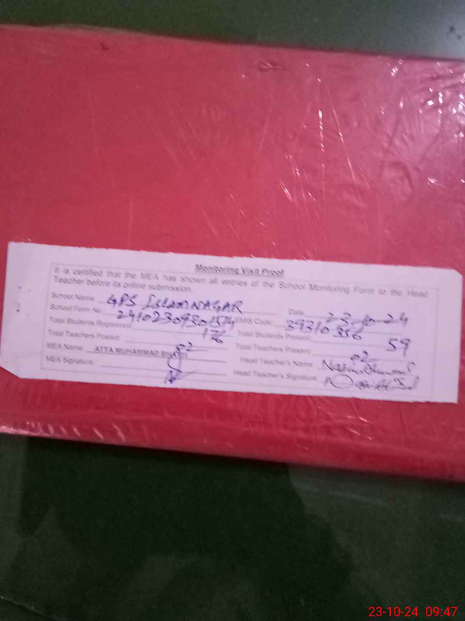 | EMIS Code: 39310356 | Name of School: GPS ISLAM NAGAR | |||