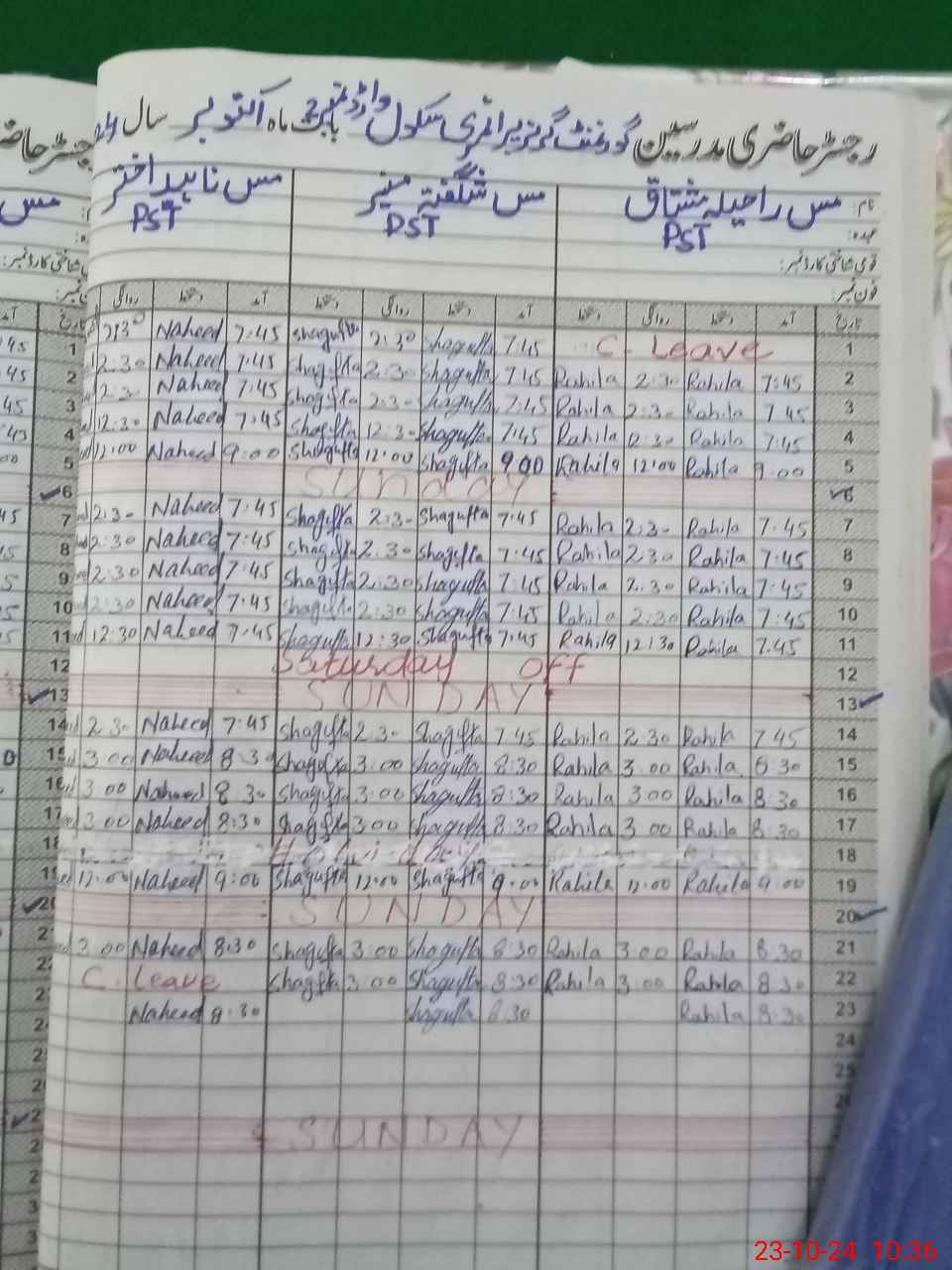 | Leave | Duty | Absent | Maternity | Medical | Ex- Pak |