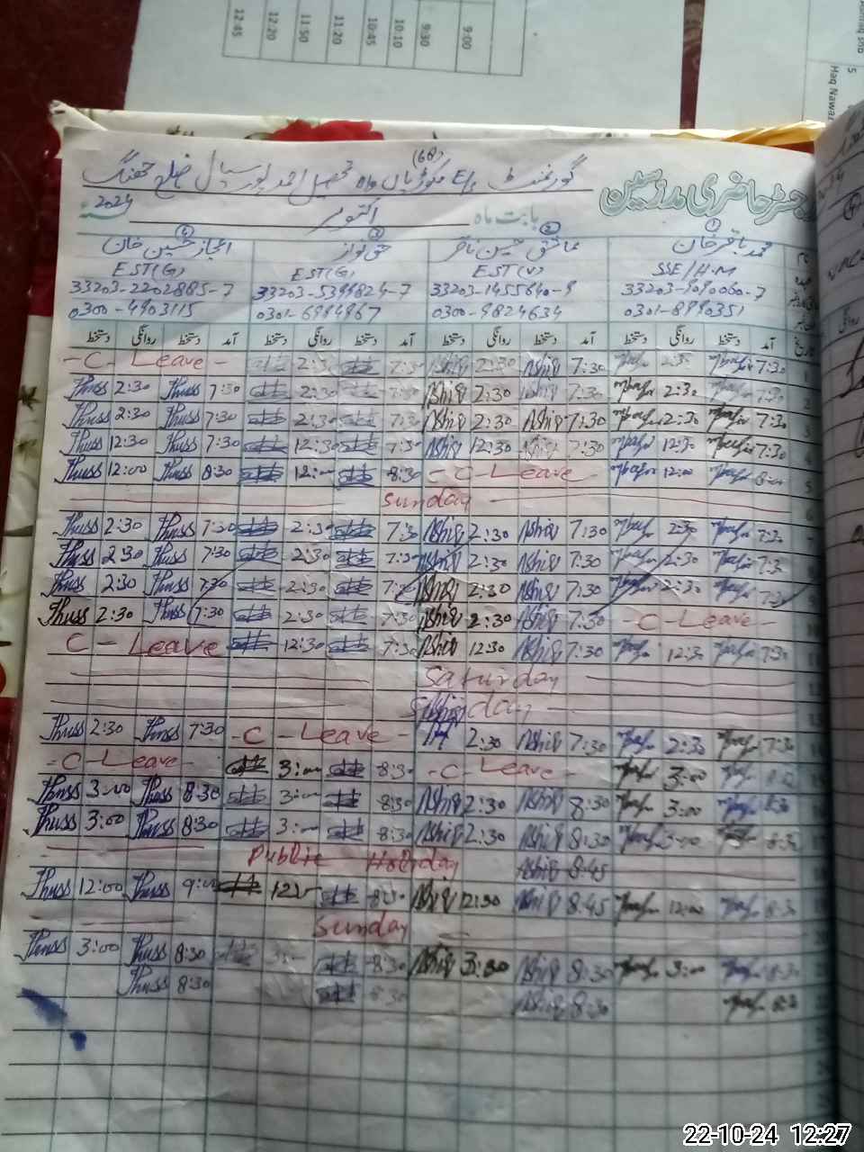 | Leave | Duty | Absent | Maternity | Medical | Ex- Pak |