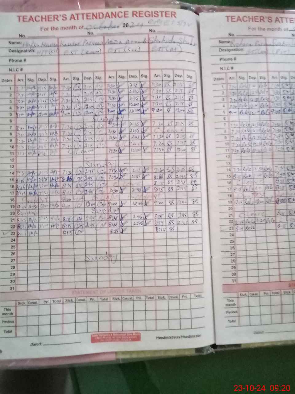 | Name: Ha**** Ko**** Designation: (School Headmaster's/Headmistress's) SST Phone/Cell Number: 03**** |
