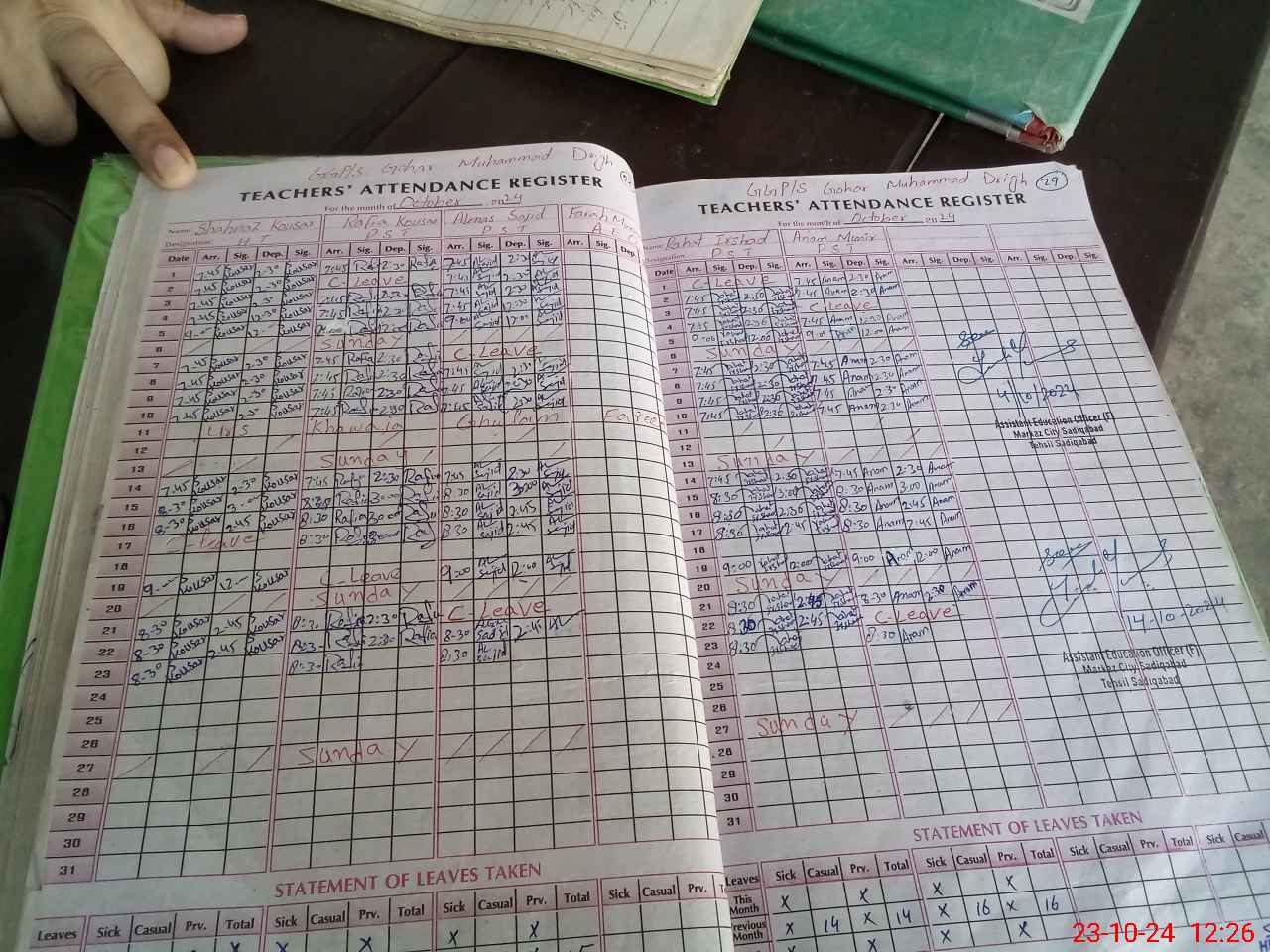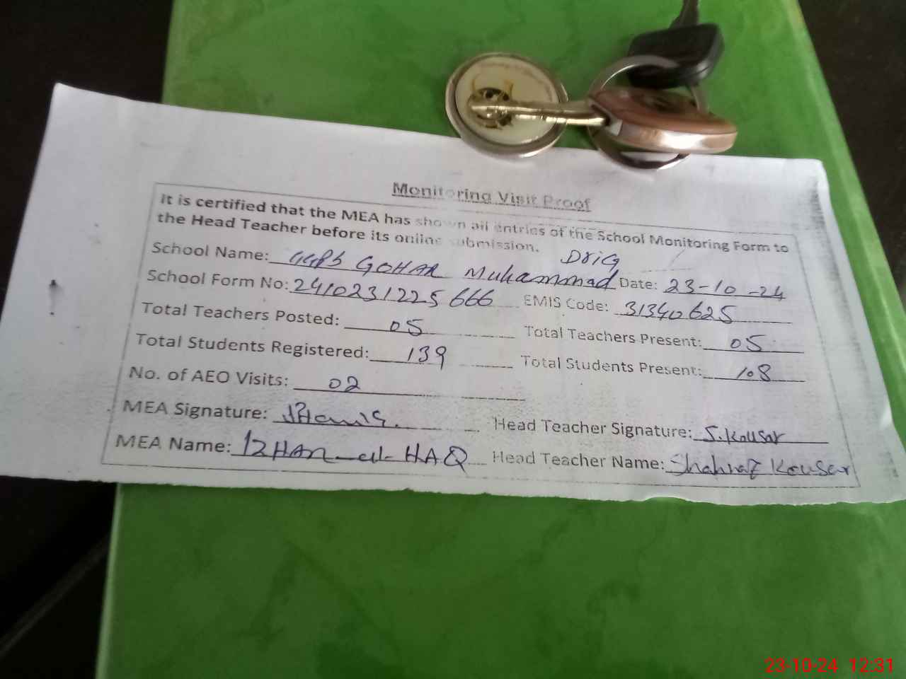 | Attendance Register | Head Teacher | MEA with School | Visit Proof |
