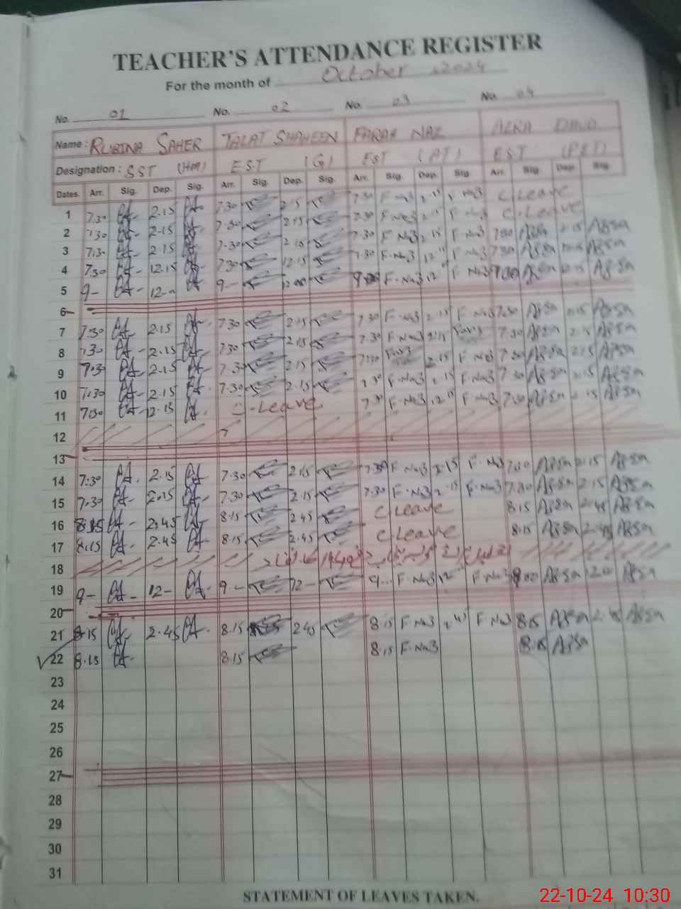 | 36**** | Aq**** Ba**** | S.S.T.(SC). | Temporary | 0 | 0 | 0 | 0 | 0 | 0 | 0 | 0 | 0 | Casual |