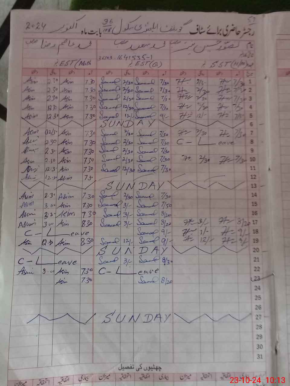 | 36**** | Ta**** Hu**** Na**** | 1 | 2 | 0 | 0 | 0 | 0 | 0 | 0 | 0 | 2 | Absent (Un-Authorized) | |