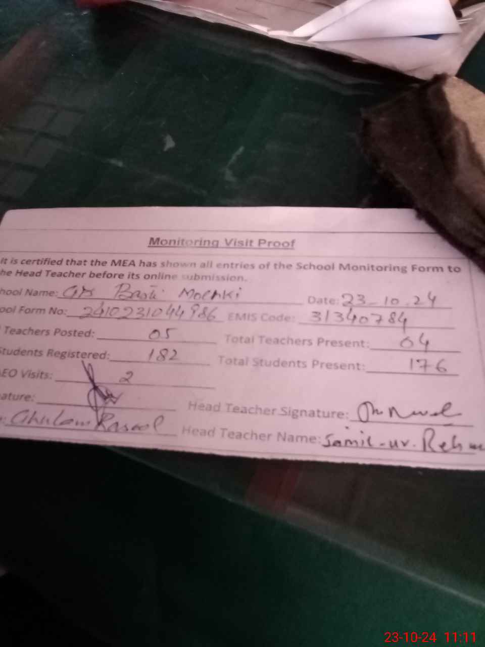 | EMIS Code: 31340784 | Name of School: GPS MOCHKI | |||