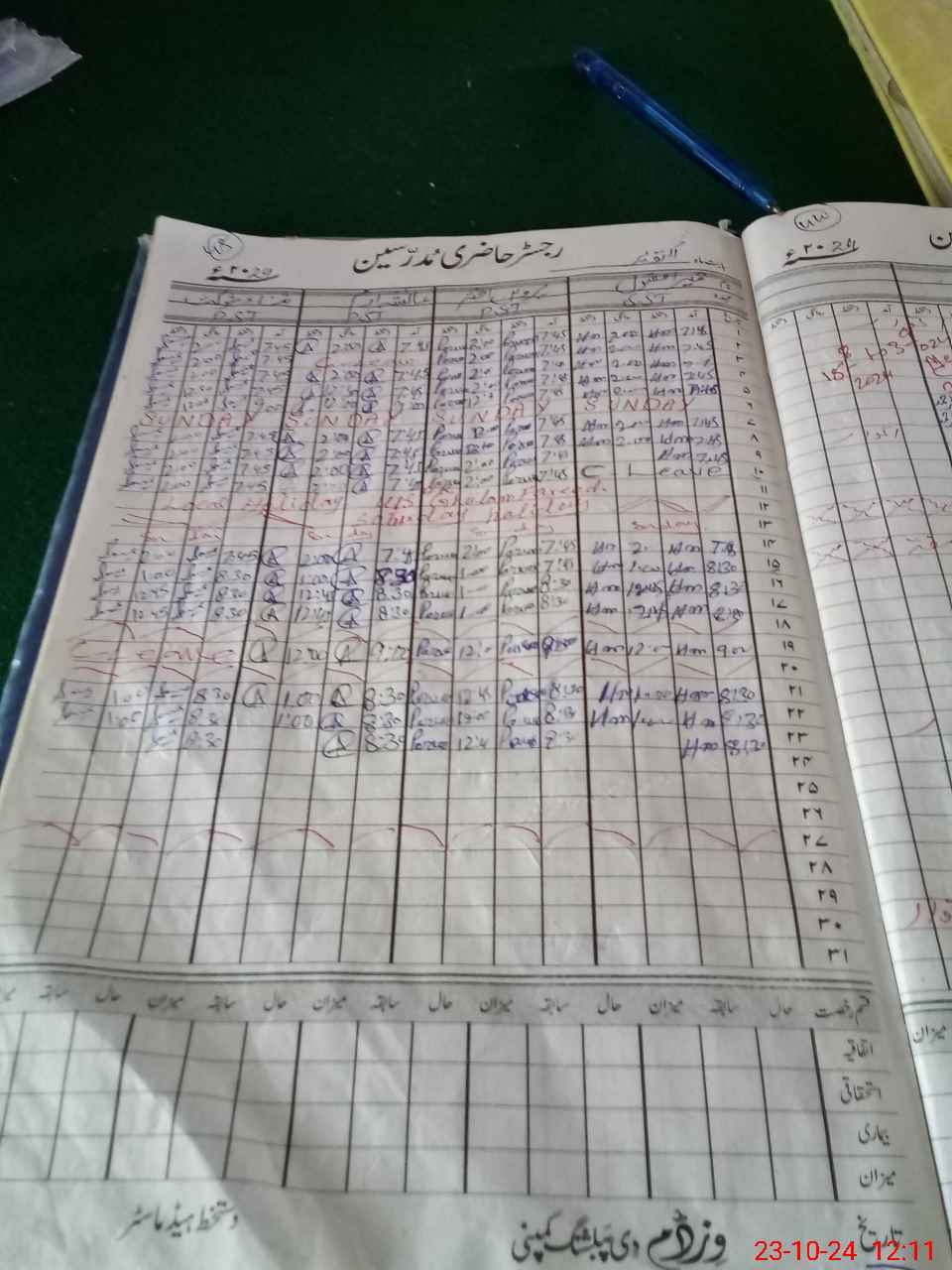 | CNIC | Full Name | Designation | R/C | Absence During Last Calender Month |