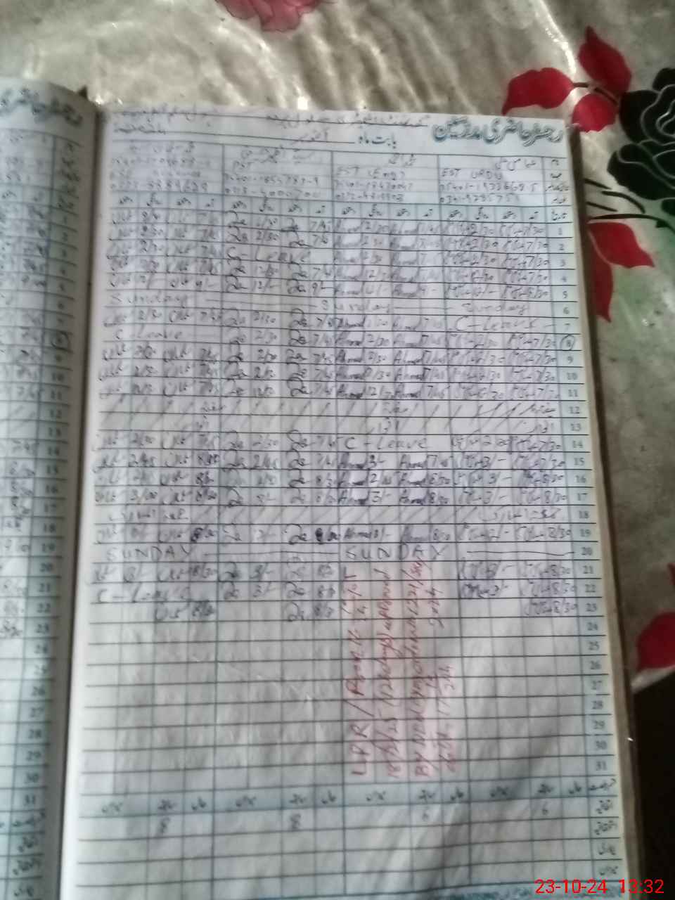 | CNIC | Full Name | Designation | R/C | Absence During Last Calender Month |