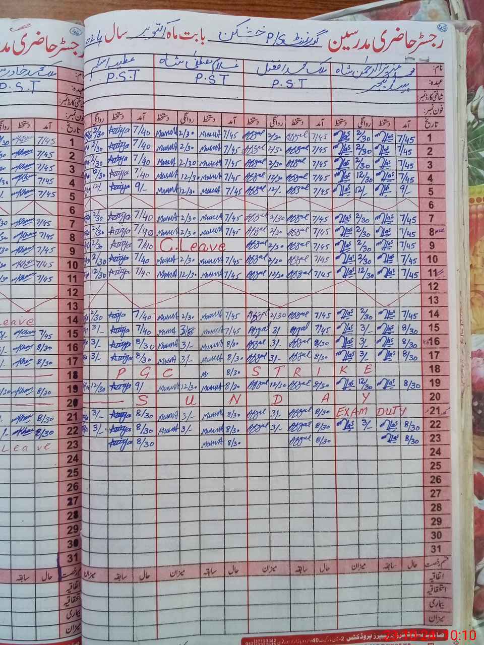 | CNIC | Full Name | Designation | R/C | Absence During Last Calender Month |