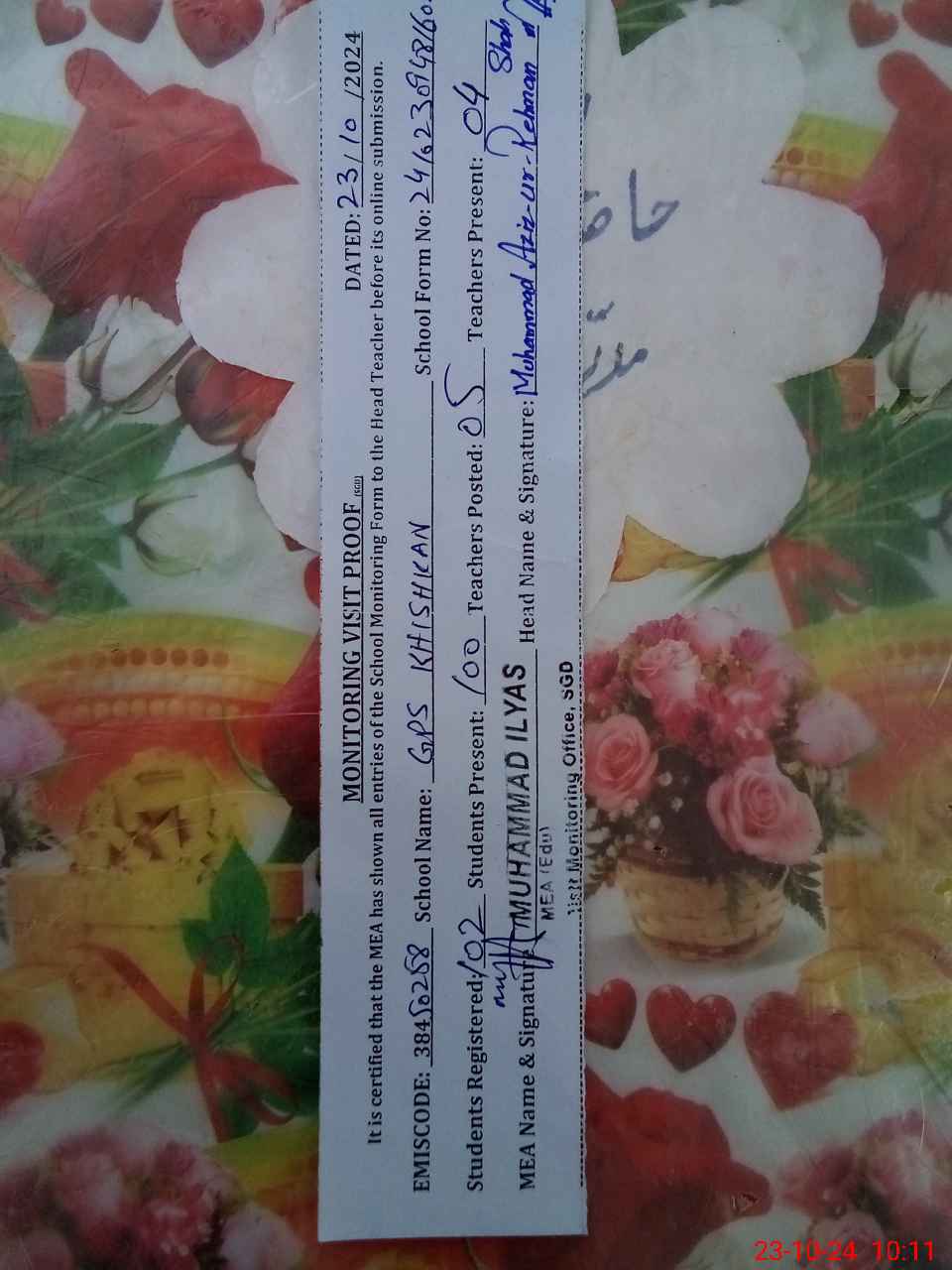 | EMIS Code: 38450258 | Name of School: GPS KHISHKAN | |||