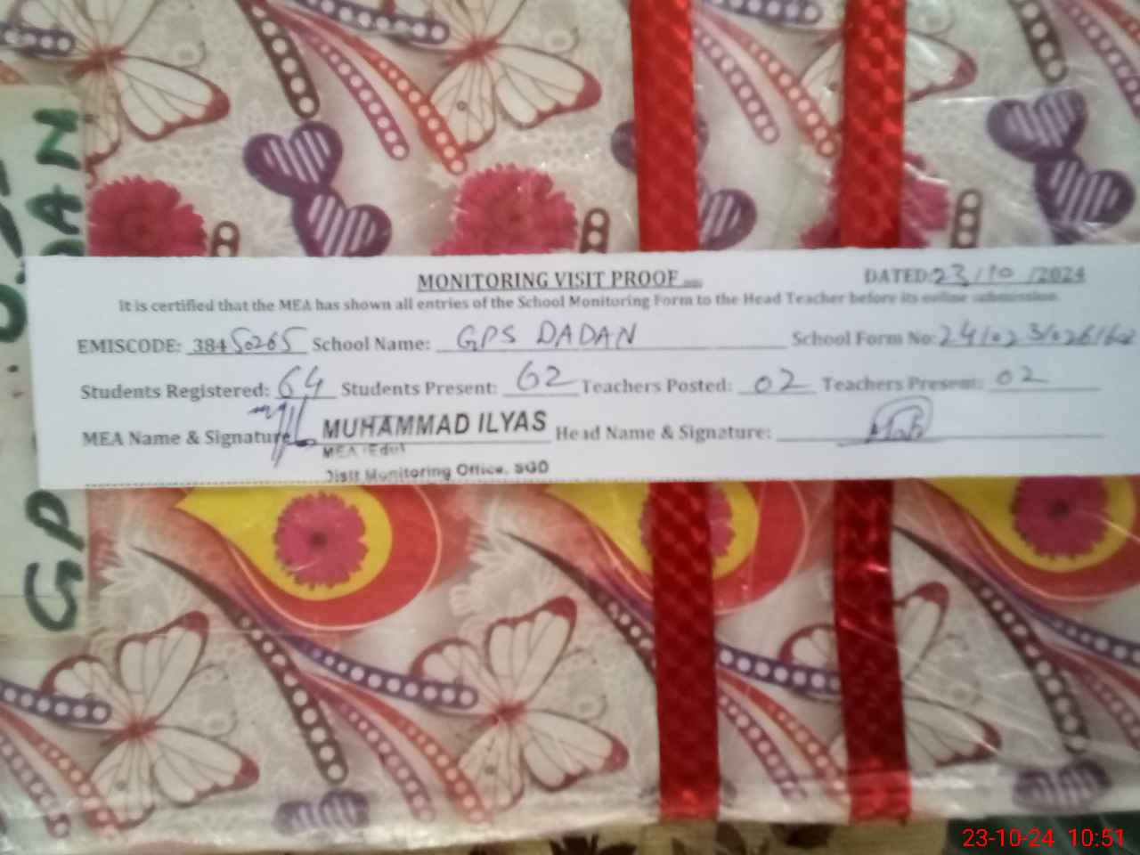 | Certified that this School was Inspected by the Undersigned MEA/DMO Today and the Information Stated Above is as Per Record. | |||||