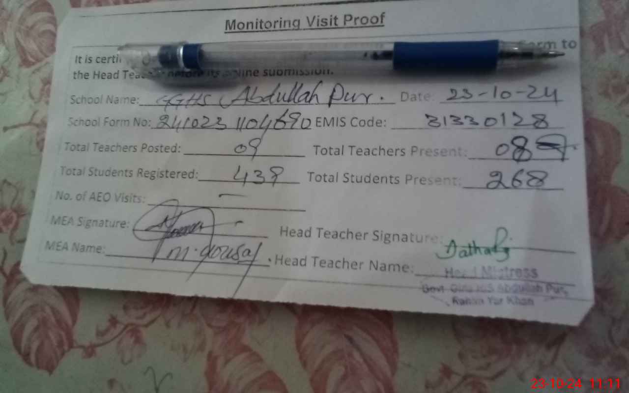 | EMIS Code: 31330128 | Name of School: GGHS ABDULLAH PUR | |||