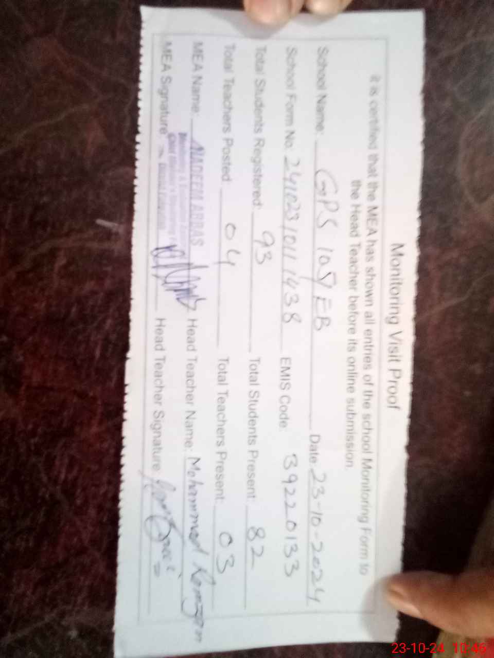 | Certified that this School was Inspected by the Undersigned MEA/DMO Today and the Information Stated Above is as Per Record. | |||||