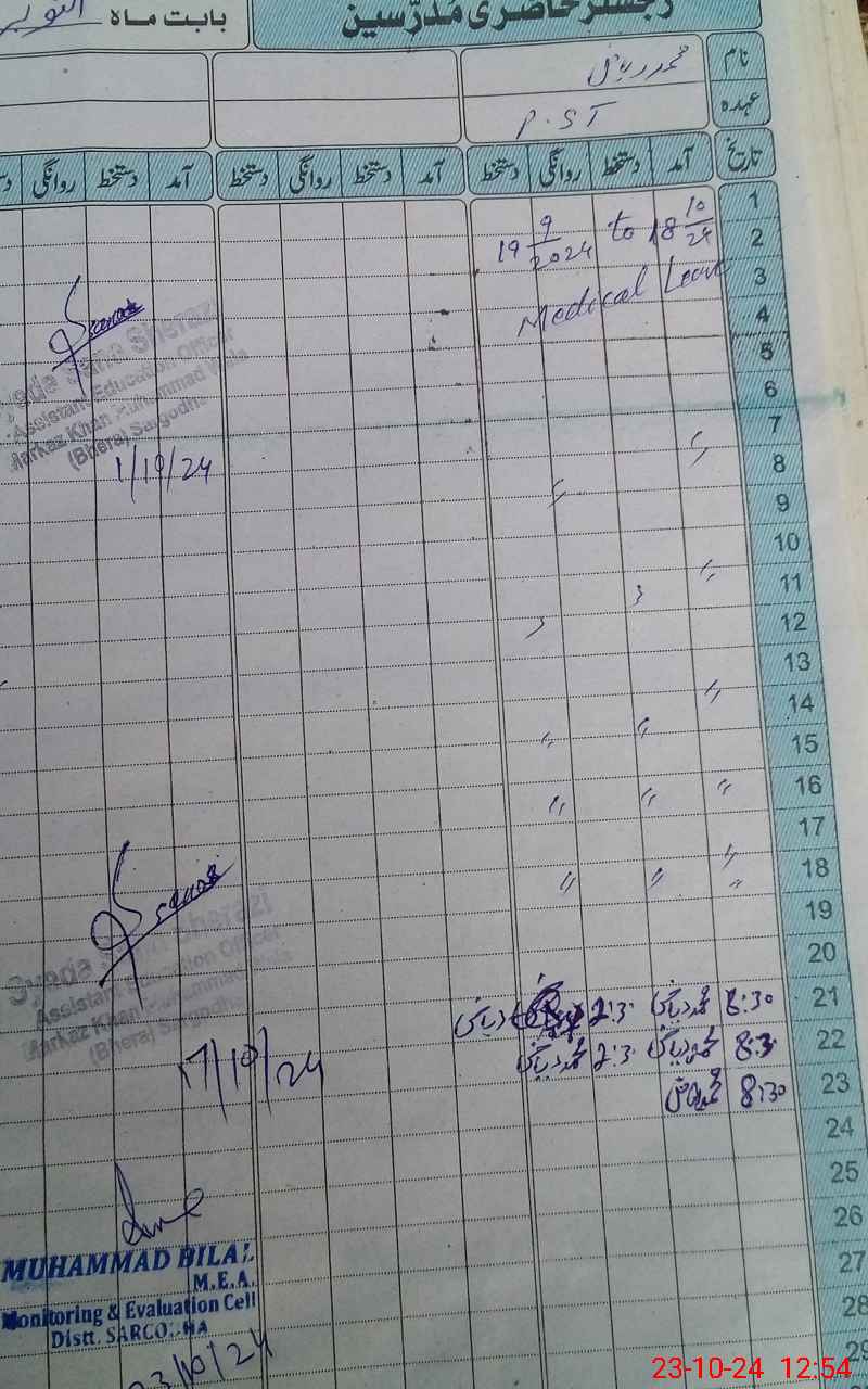 | Name: Mu**** Zu**** Designation: (School Headmaster's/Headmistress's) PST Phone/Cell Number: 03**** |