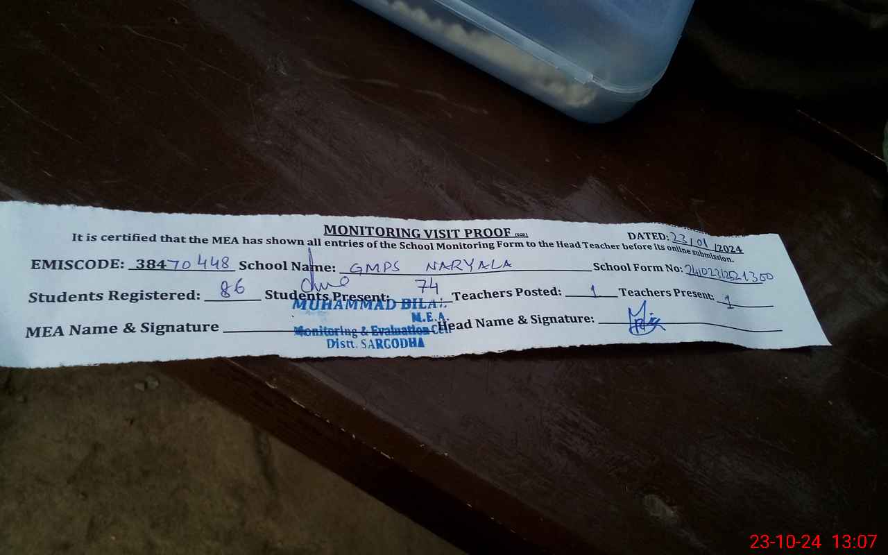 | EMIS Code: 38470448 | Name of School: GMPS NARYALA | |||