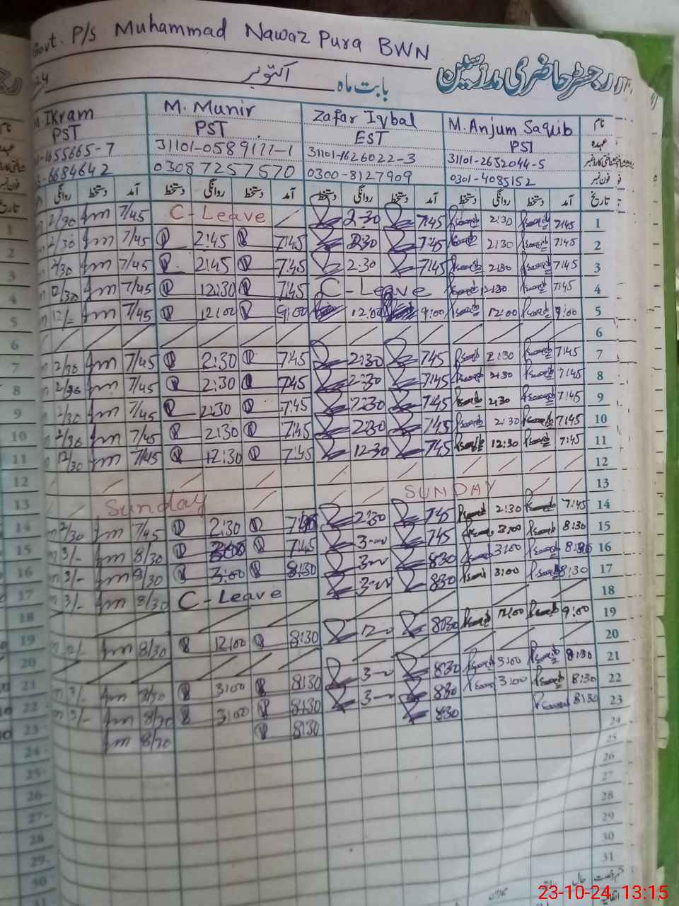 | CNIC | Full Name | Designation | R/C | Absence During Last Calender Month |