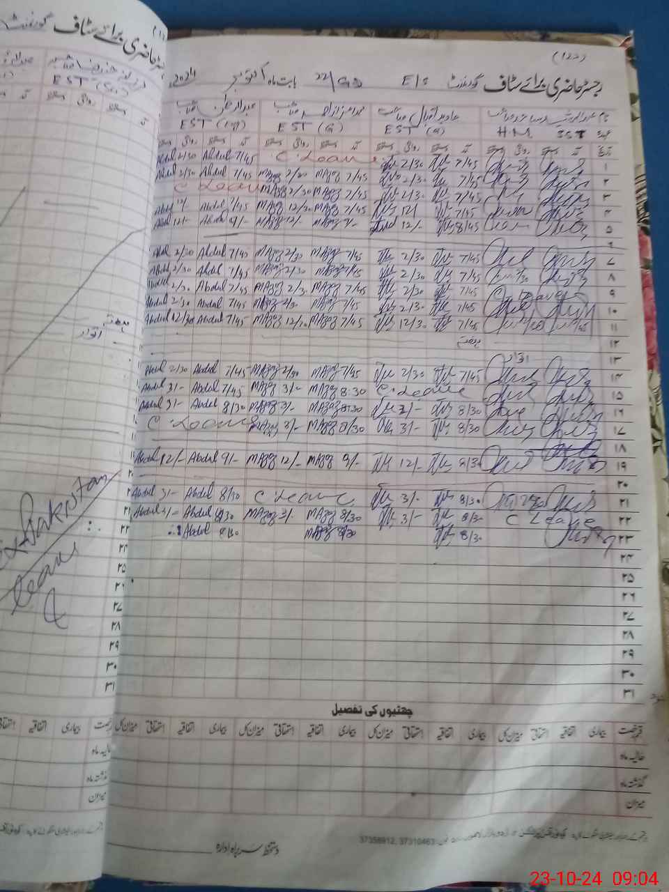 | CNIC | Full Name | Designation | R/C | Absence During Last Calender Month |