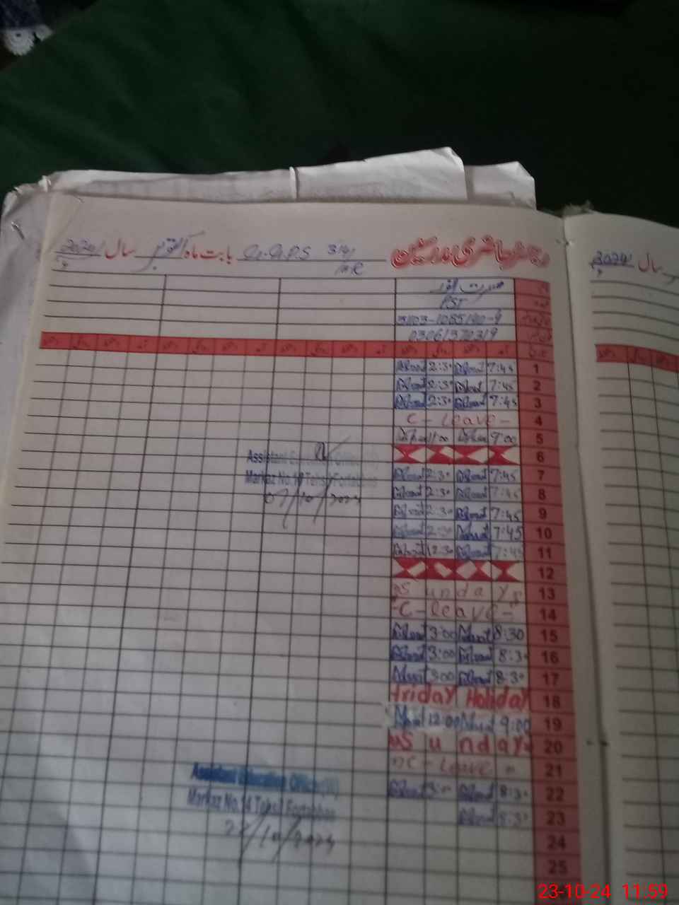 | CNIC | Full Name | Designation | R/C | Absence During Last Calender Month |