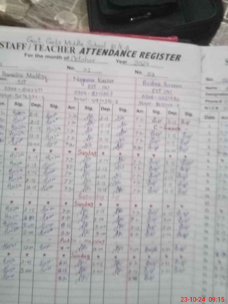 | Name: NA**** KO**** Designation: (School Headmaster's/Headmistress's) EST (GENERAL) Phone/Cell Number: 03**** |