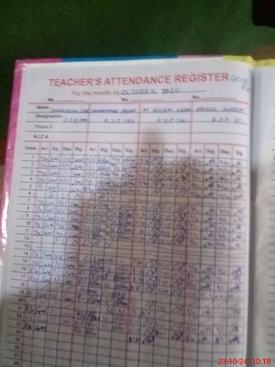 | CNIC | Full Name | Designation | R/C | Absence During Last Calender Month |