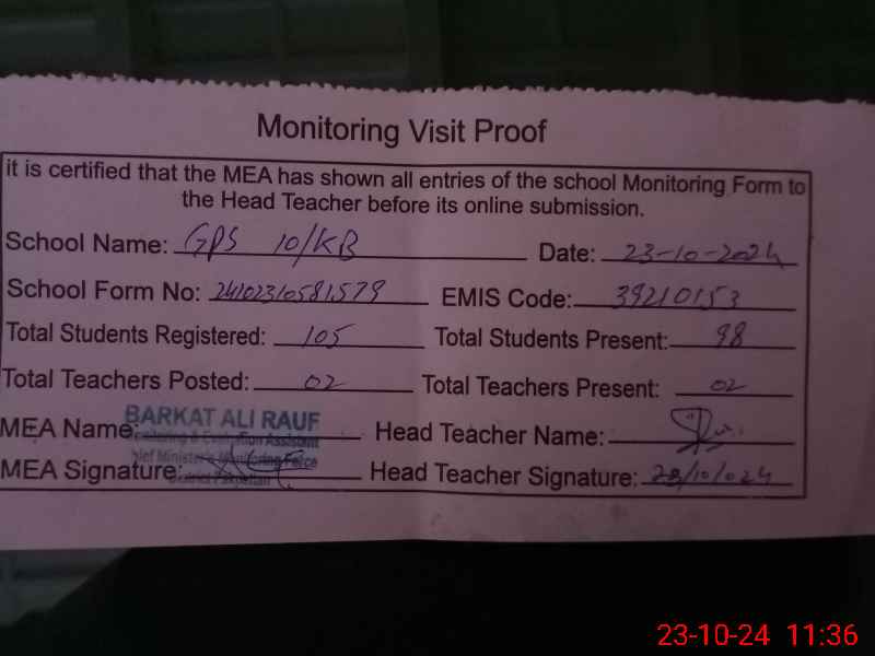 | EMIS Code: 39210153 | Name of School: GPS 10 KB | |||