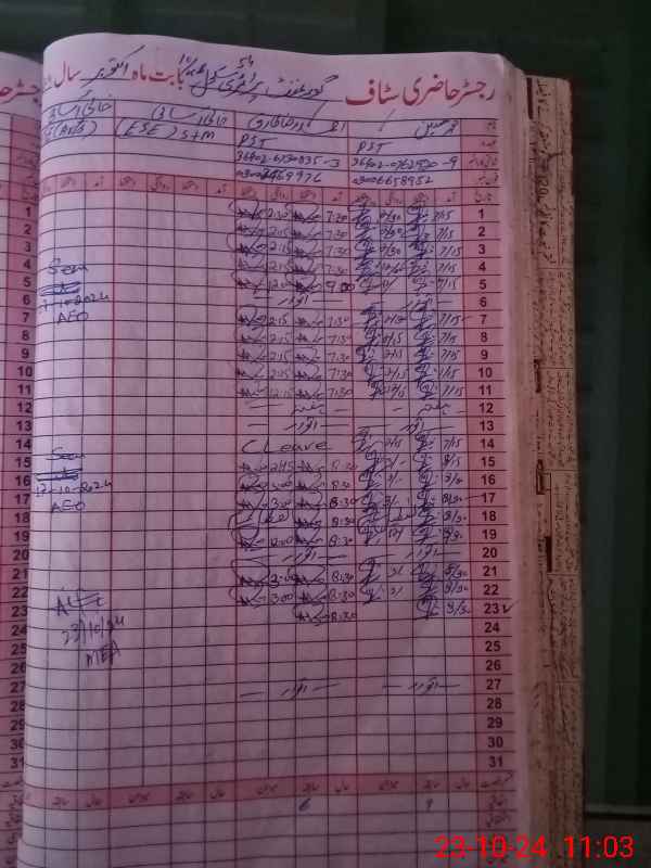 | Name: MU**** HU**** Designation: (School Headmaster's/Headmistress's) PST Phone/Cell Number: 03**** |