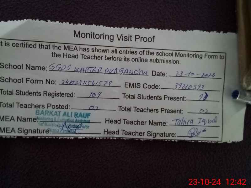 | EMIS Code: 39210393 | Name of School: GGPS KARTAR PUR GANDIAN | |||