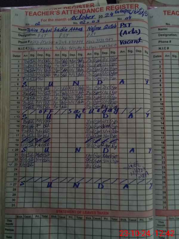 | Name: Ta**** Iq**** Designation: (School Headmaster's/Headmistress's) PST Phone/Cell Number: 03**** |
