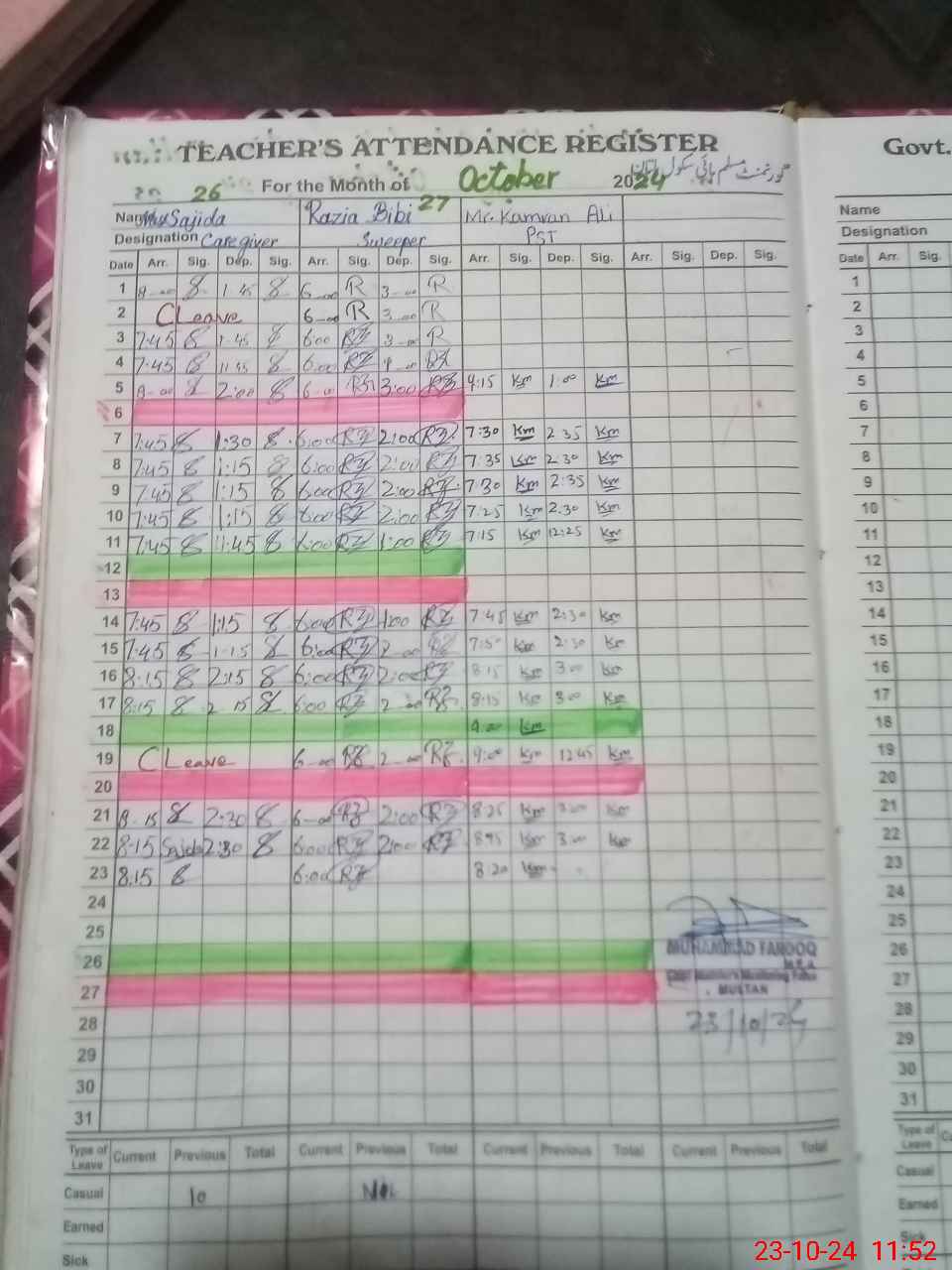 | 36**** | Ba**** Al**** Kh**** | PST | Regular | 0 | 0 | 0 | 0 | 0 | 0 | 0 | 0 | 0 | Casual |