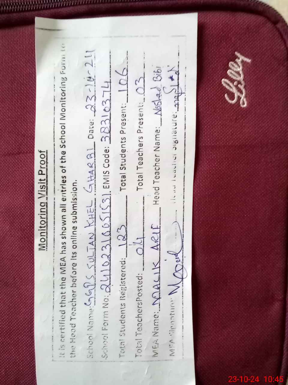 | EMIS Code: 38310374 | Name of School: GGPS SULTAN KHEL GHARBI | |||