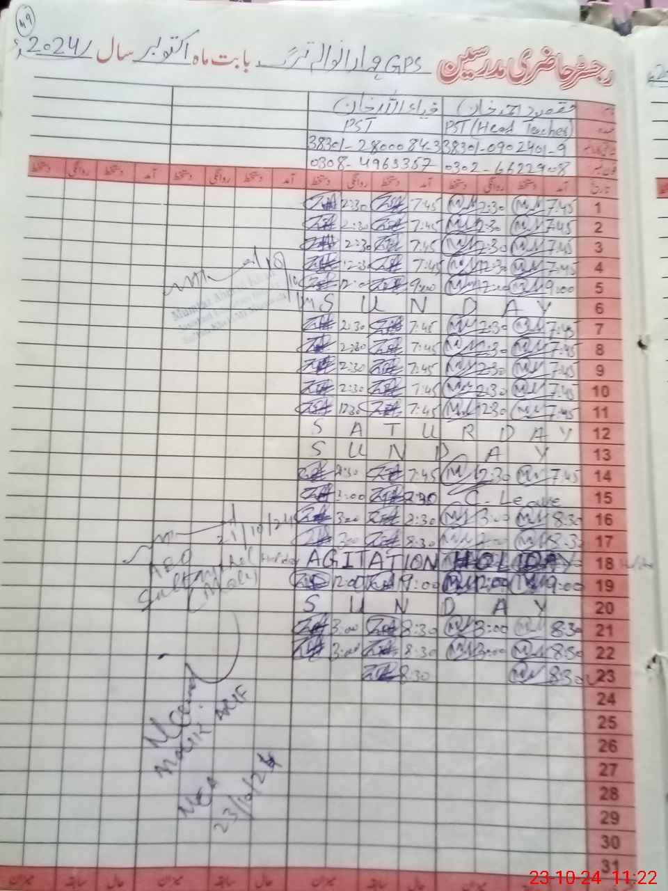 | Name: Zi**** Ul**** Kh**** Designation: (School Headmaster's/Headmistress's) PST Phone/Cell Number: 03**** |