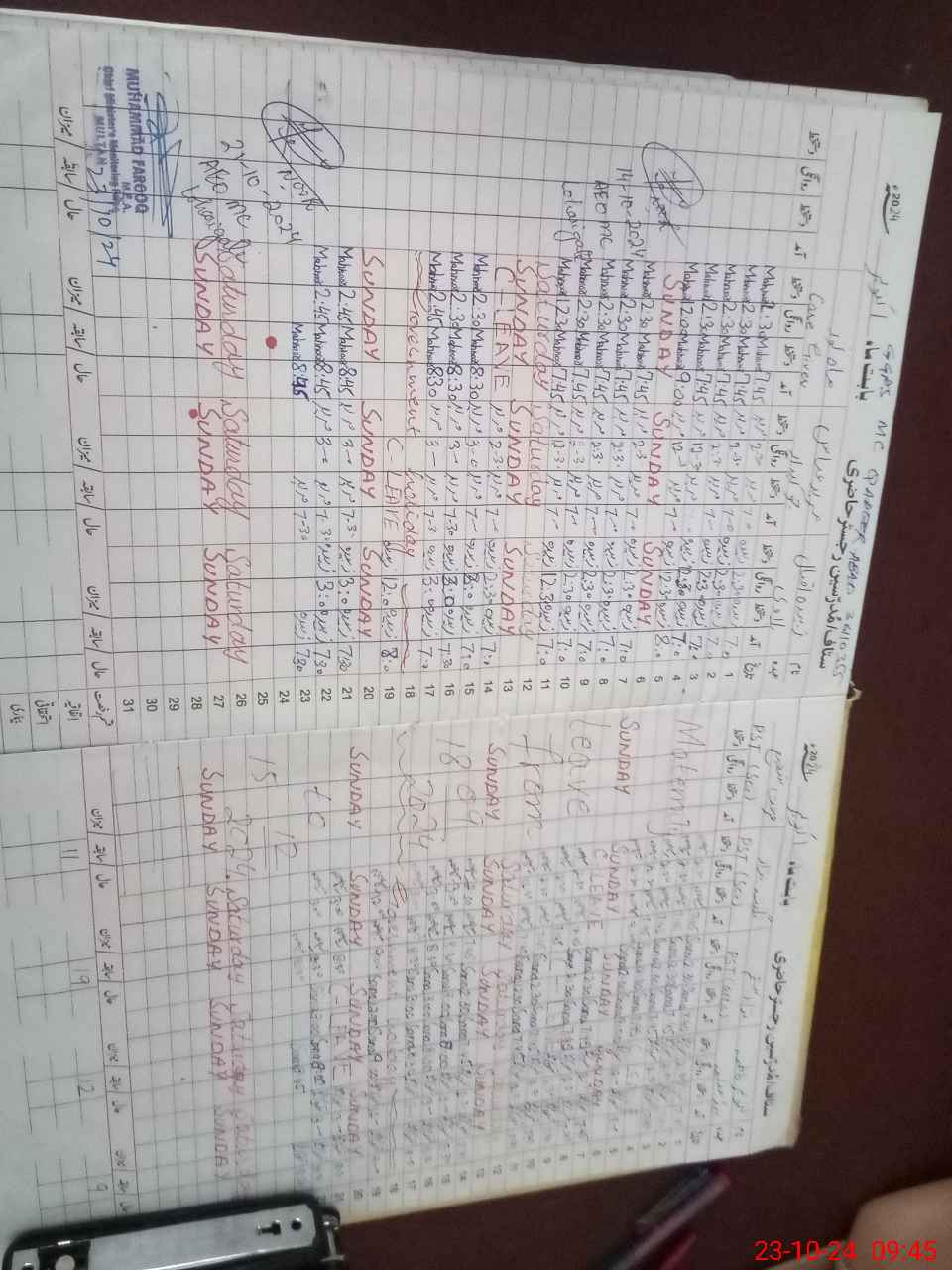 | CNIC | Full Name | Designation | R/C | Absence During Last Calender Month |