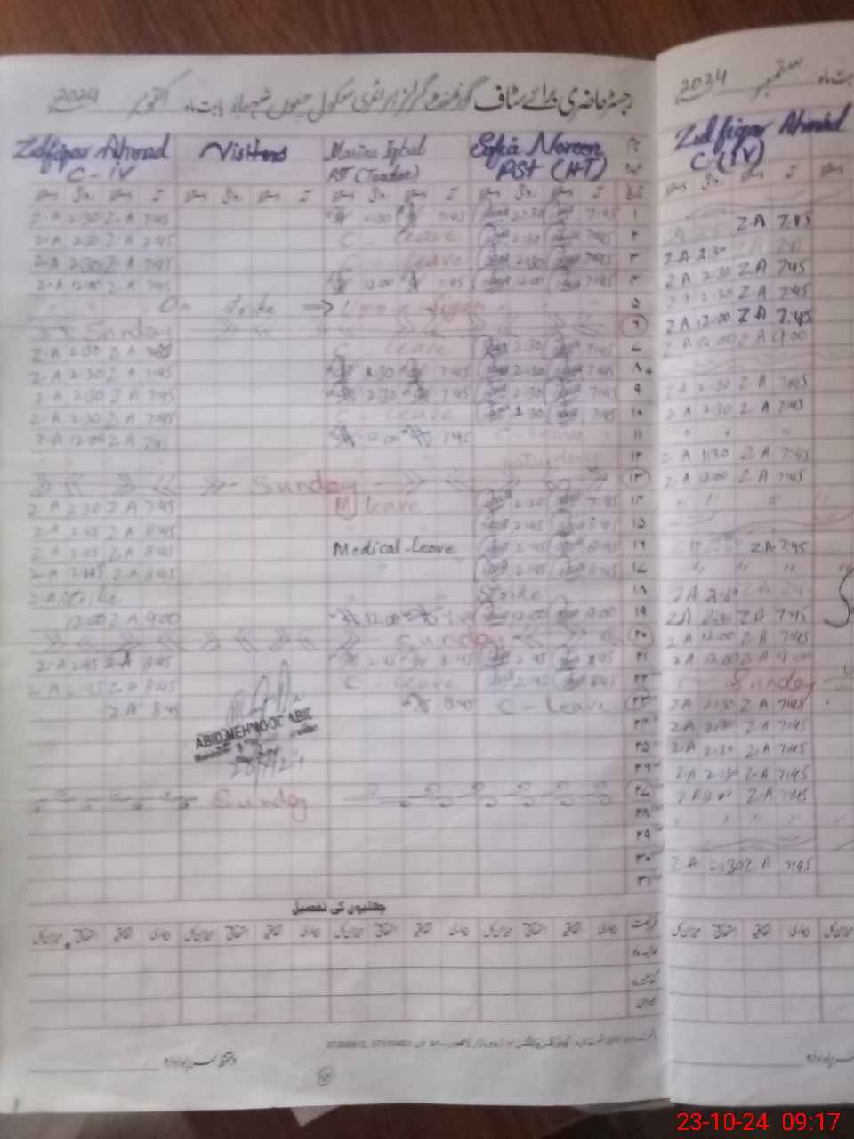| CNIC | Full Name | Designation | R/C | Absence During Last Calender Month |