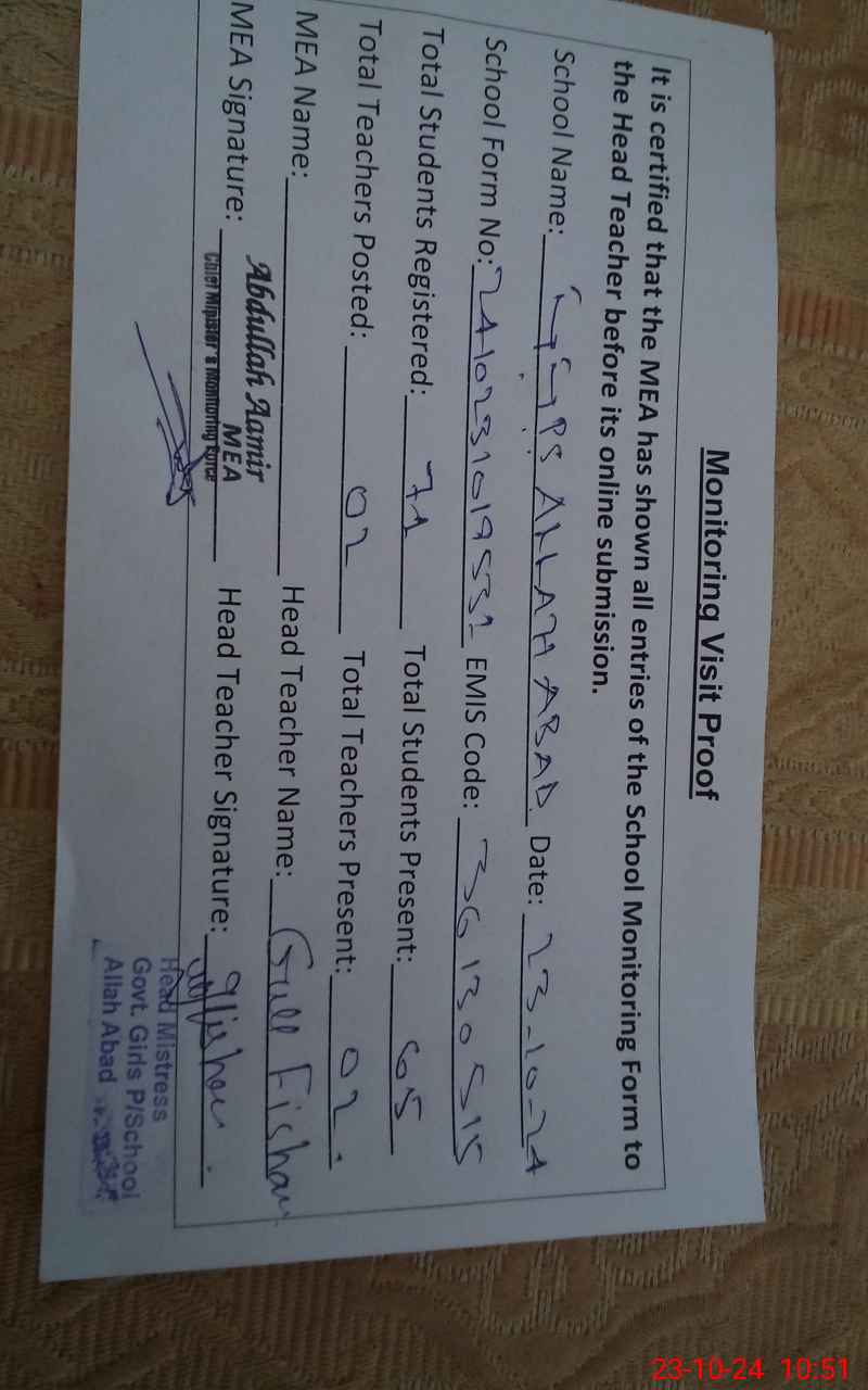 | EMIS Code: 36130515 | Name of School: GGPS ALLAH ABAD MULTAN | |||