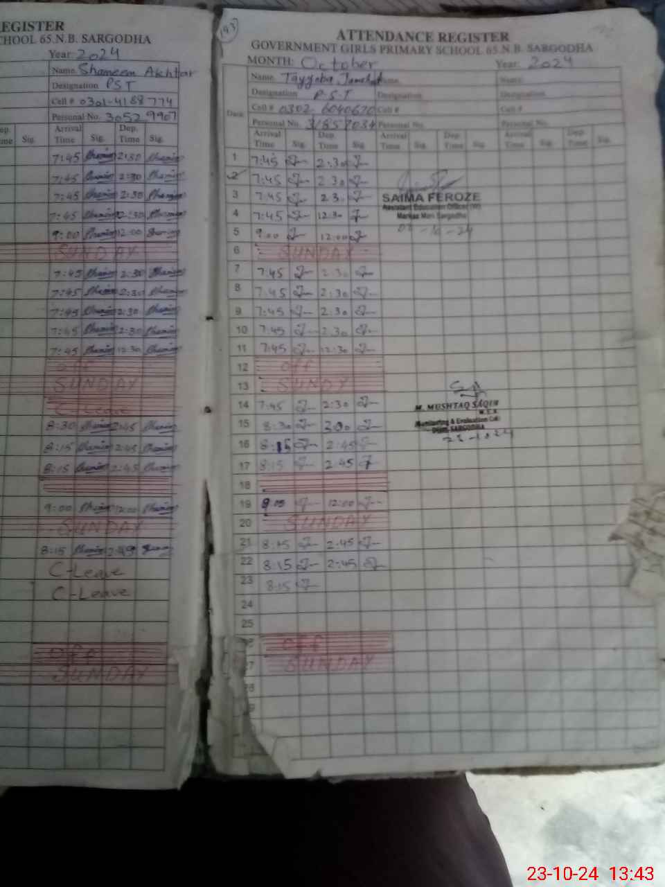 | Name: IF**** PA**** Designation: (School Headmaster's/Headmistress's) PST Phone/Cell Number: 03**** |