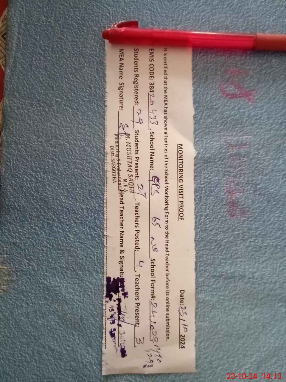 | EMIS Code: 38420433 | Name of School: GPS CHAK NO.65 NB | |||