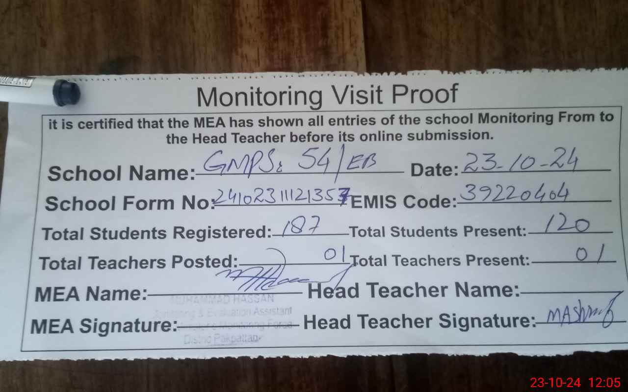 | EMIS Code: 39220404 | Name of School: GMPS 54 EB PO 50 EB | |||