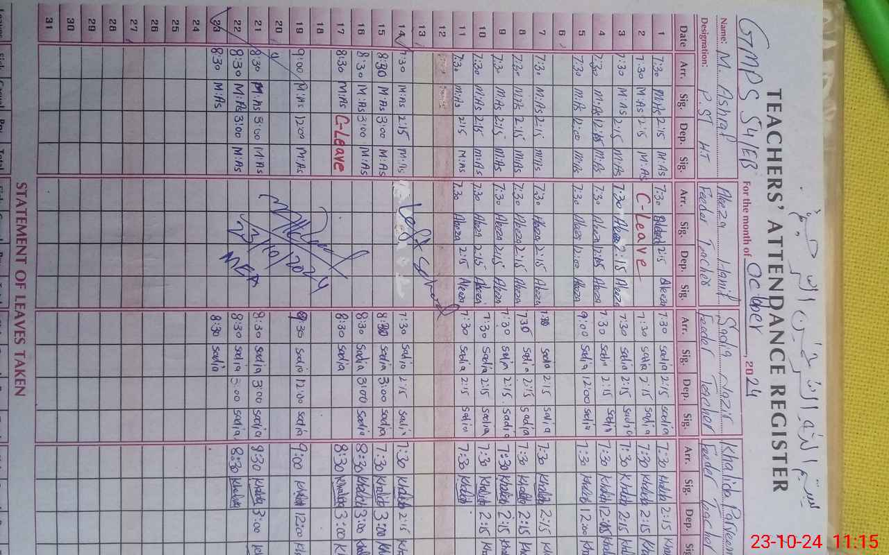 | Name: MU**** AS**** Designation: (School Headmaster's/Headmistress's) PST Phone/Cell Number: 03**** |