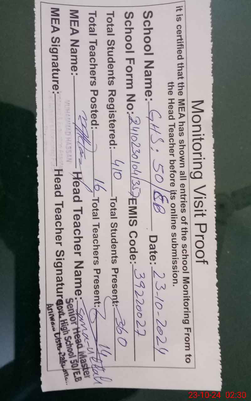 | EMIS Code: 39220027 | Name of School: GHS 50/EB | |||