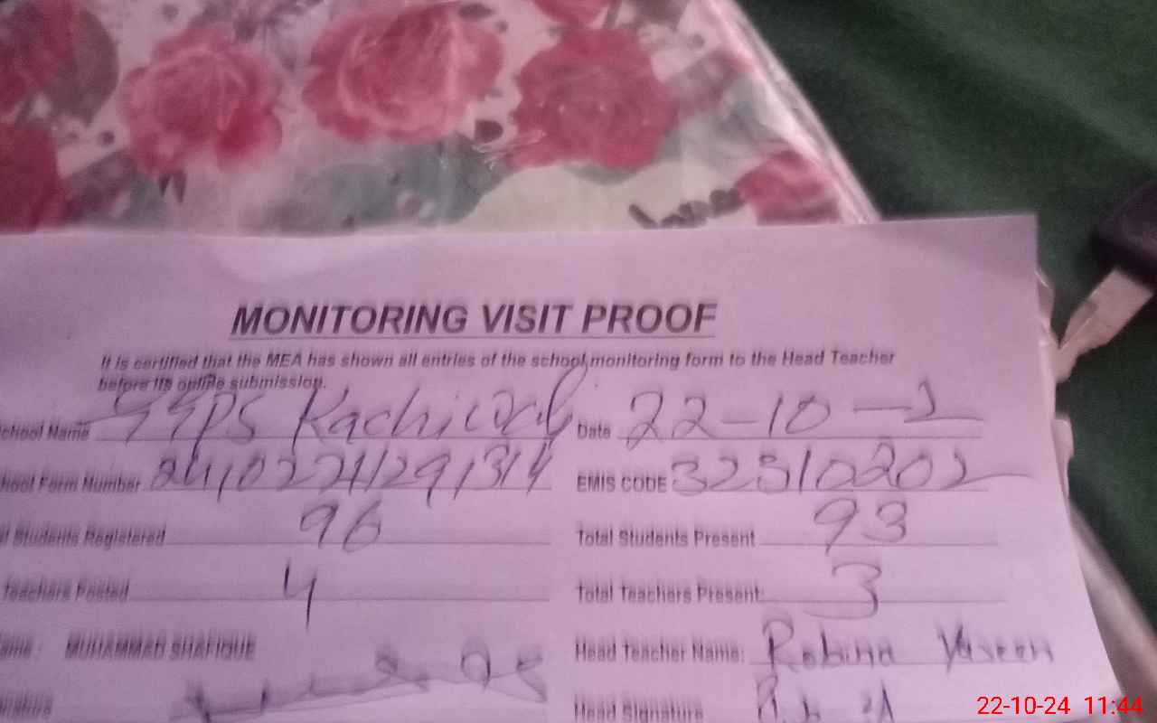 | EMIS Code: 32310202 | Name of School: GGPS KACHI WALI | |||