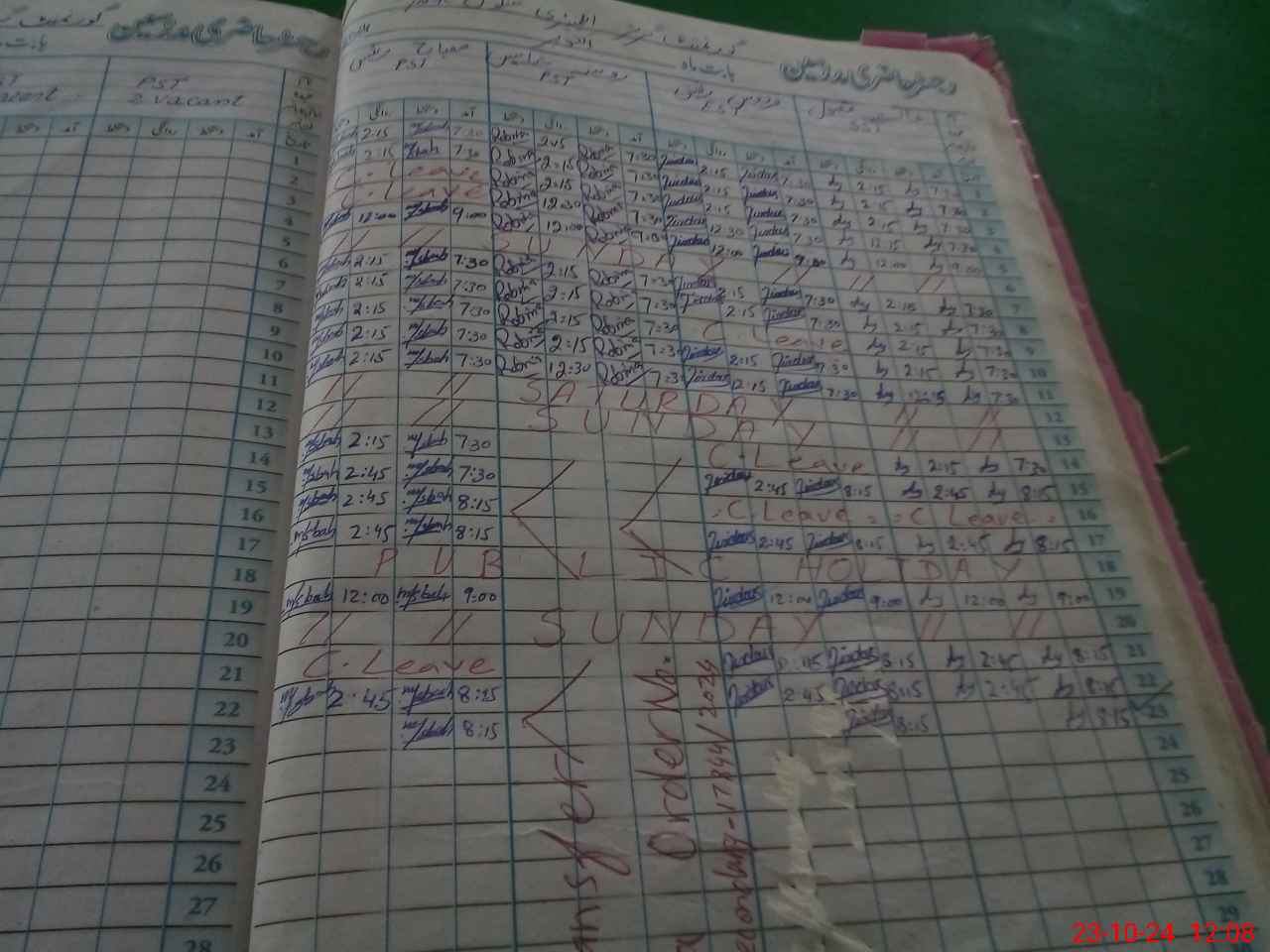 | Leave | Duty | Absent | Maternity | Medical | Ex- Pak |