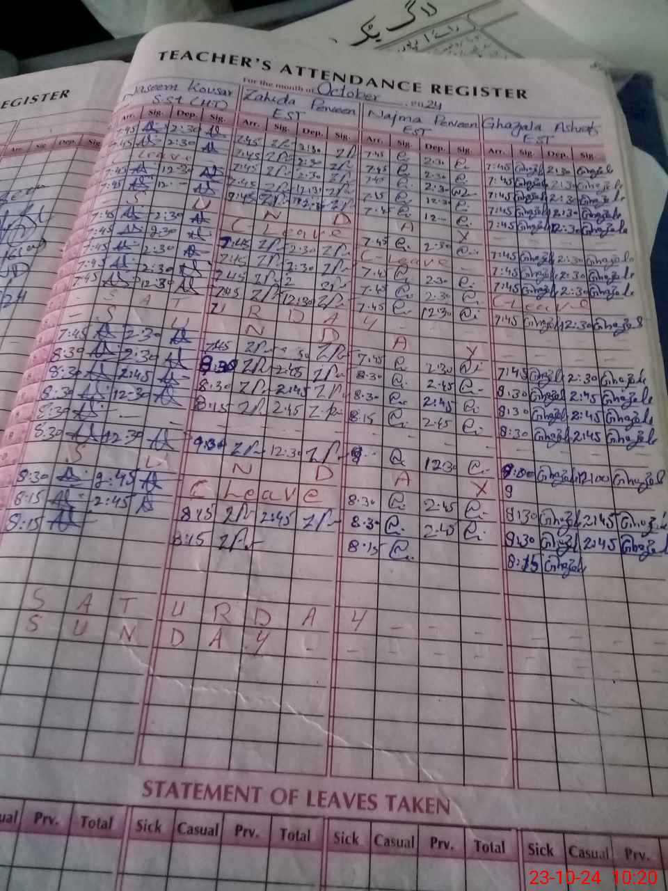 | Leave | Duty | Absent | Maternity | Medical | Ex- Pak |