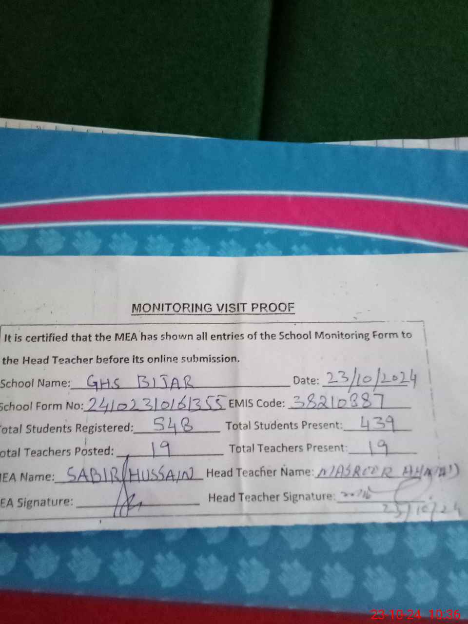 | EMIS Code: 38210887 | Name of School: GHS BIJAR | |||