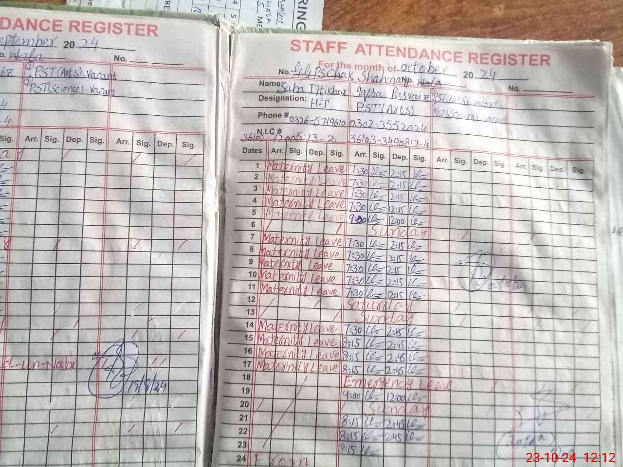 | Name: SA**** IF**** Designation: (School Headmaster's/Headmistress's) ESE (SCI-MATH) Phone/Cell Number: 03**** |