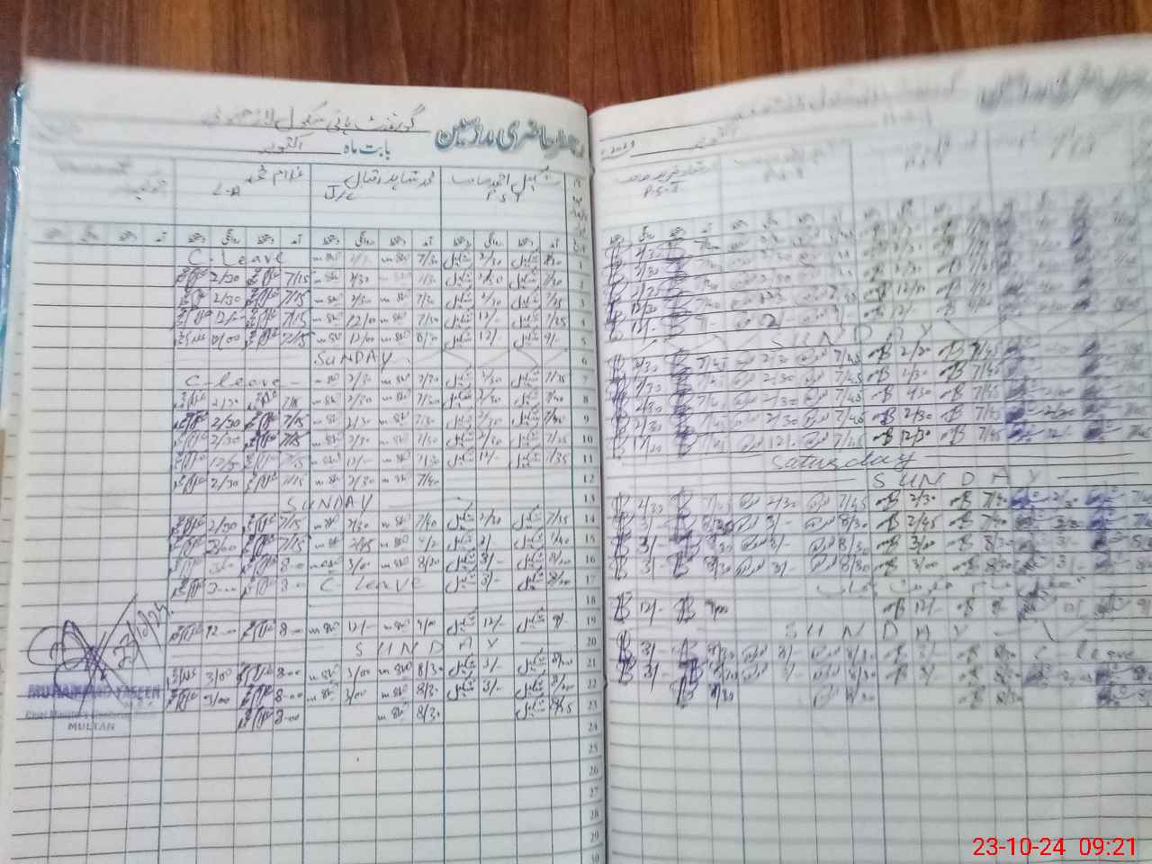 | CNIC | Full Name | Designation | R/C | Absence During Last Calender Month |