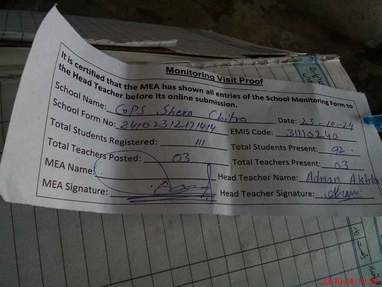 | EMIS Code: 31110240 | Name of School: GPS SHERA CHITRA | |||