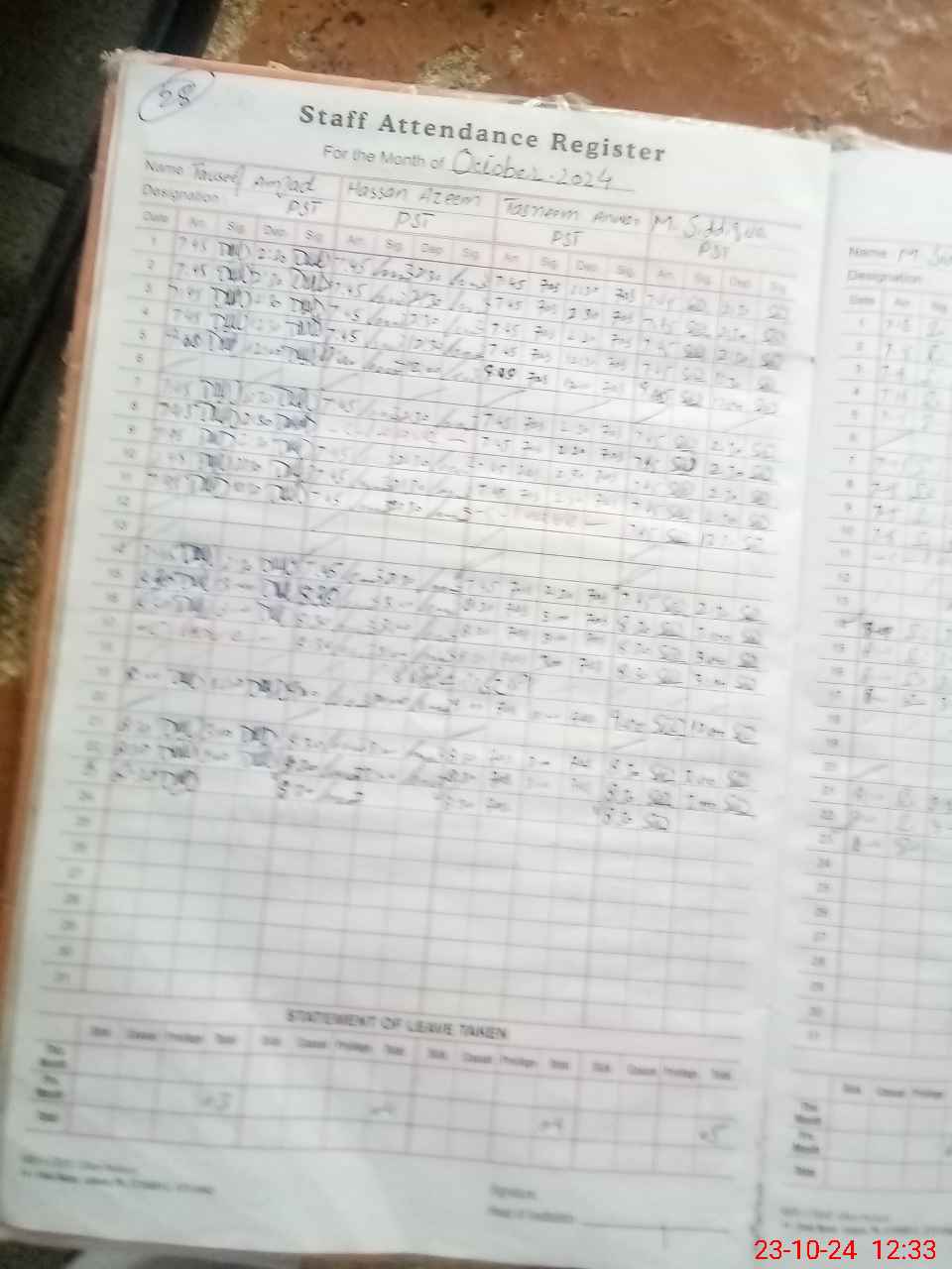 | Name: To**** Am**** Designation: (School Headmaster's/Headmistress's) PST Phone/Cell Number: 03**** |