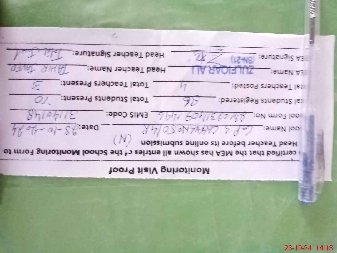 | Certified that this School was Inspected by the Undersigned MEA/DMO Today and the Information Stated Above is as Per Record. | |||||