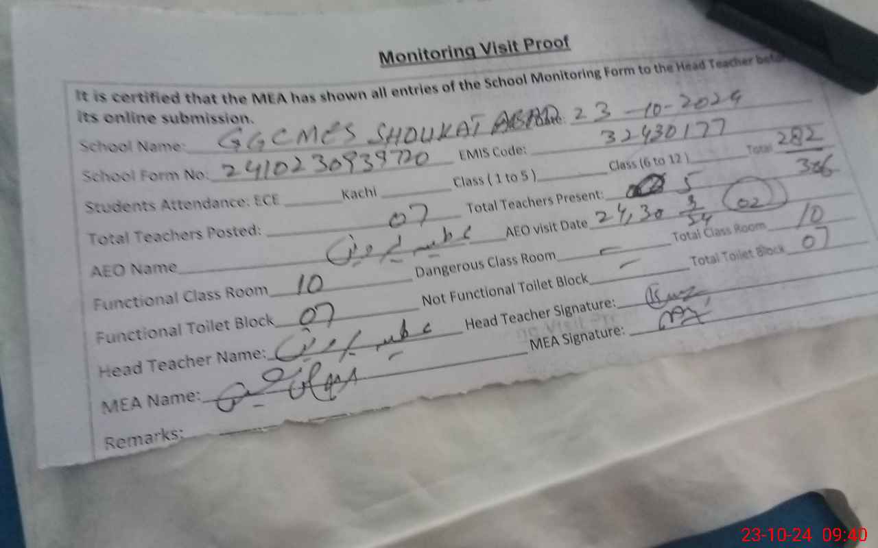 | EMIS Code: 32430177 | Name of School: GGCMES SHOUKAT ABAD | |||